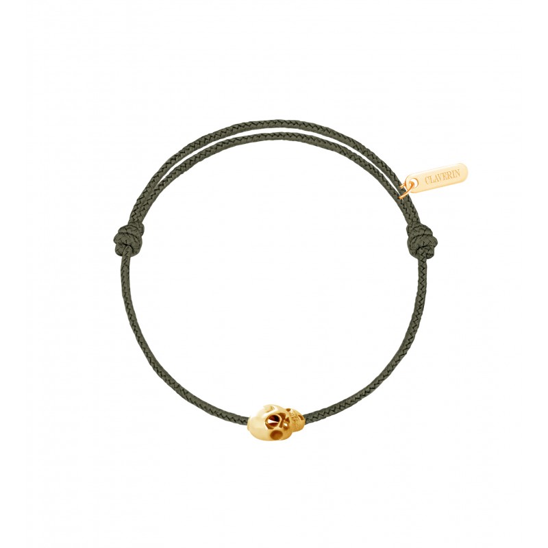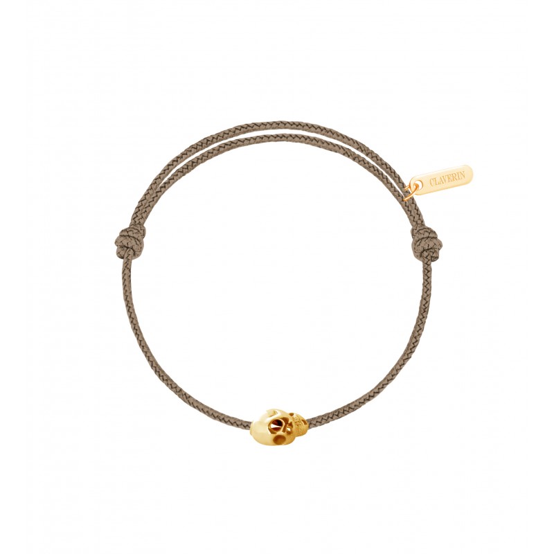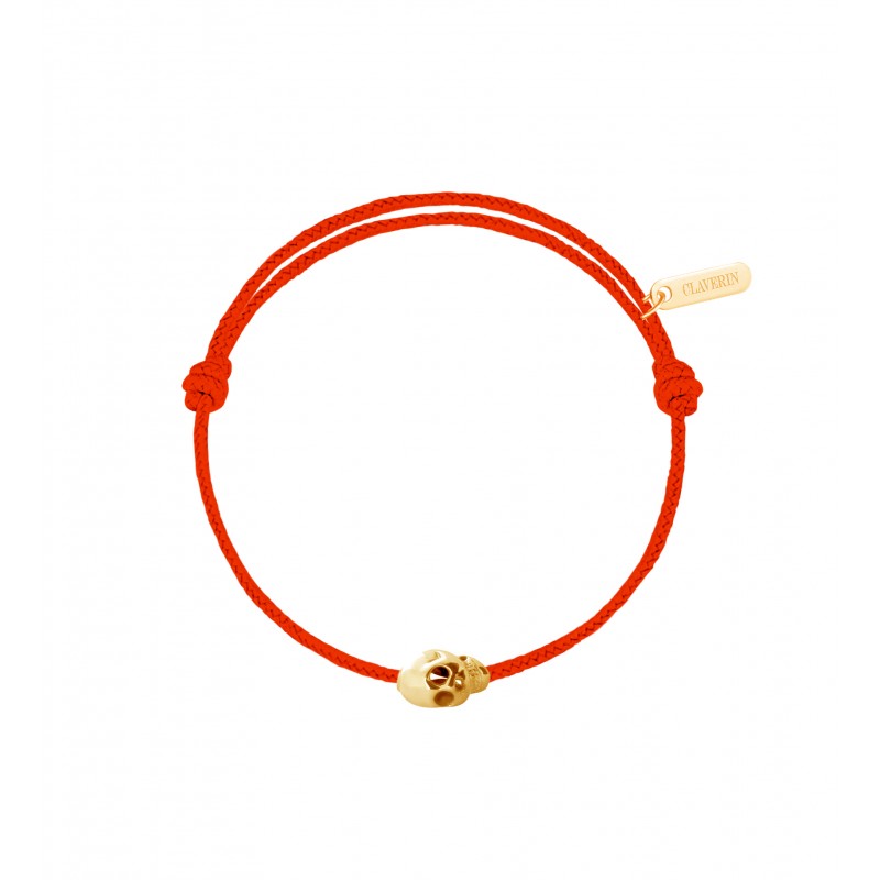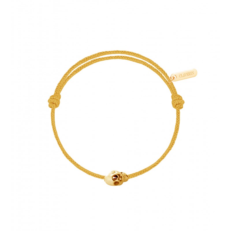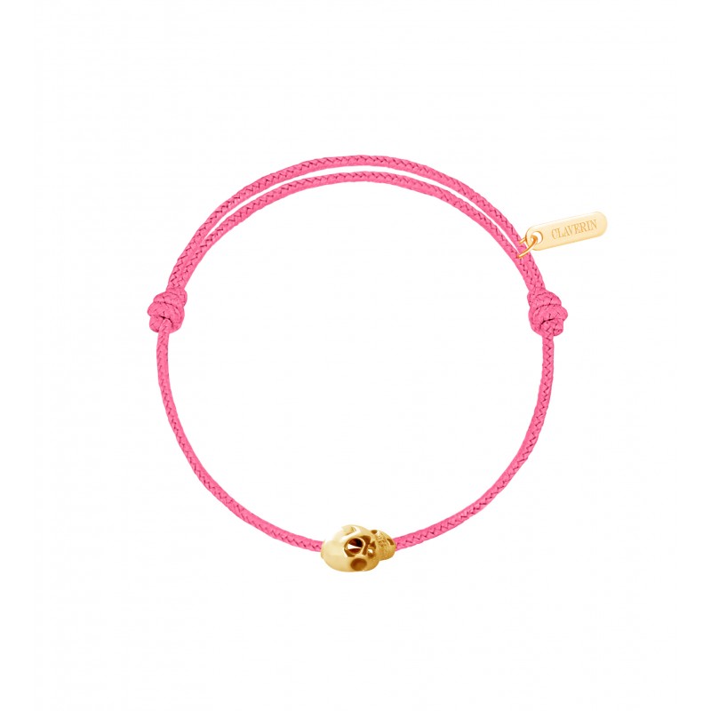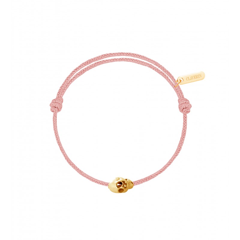 18 carat pink gold skull and crossbones on cord bracelet (baby or childen's) adjustable by means of sliding knots.