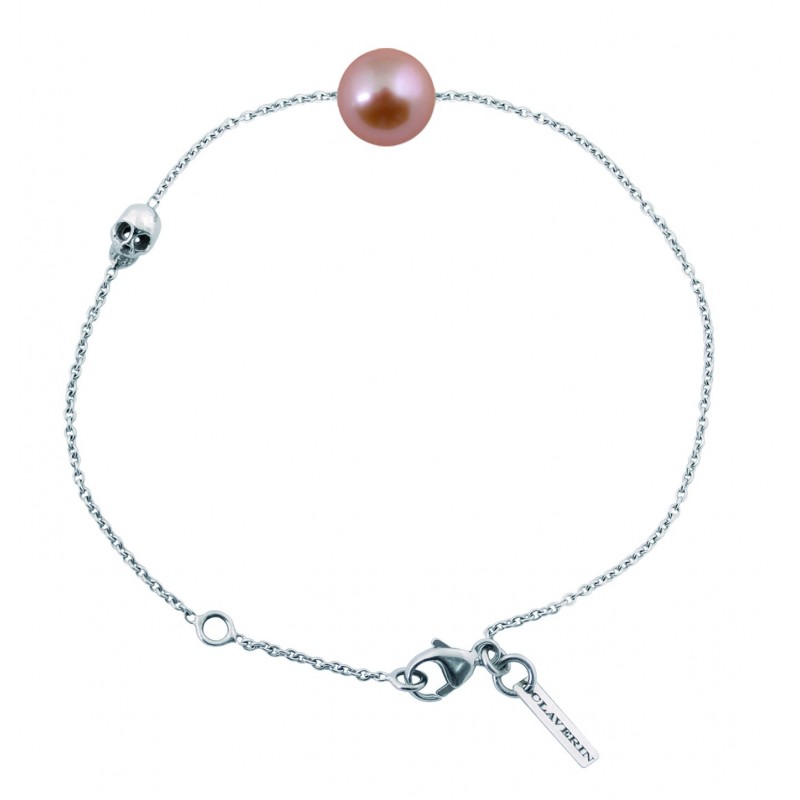 Pink pearl bracelet on 18 carat white gold chain (17 cm) with 15 cm. band with 18 carat white gold skull and crossbones motif.