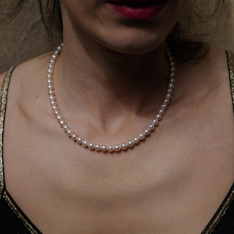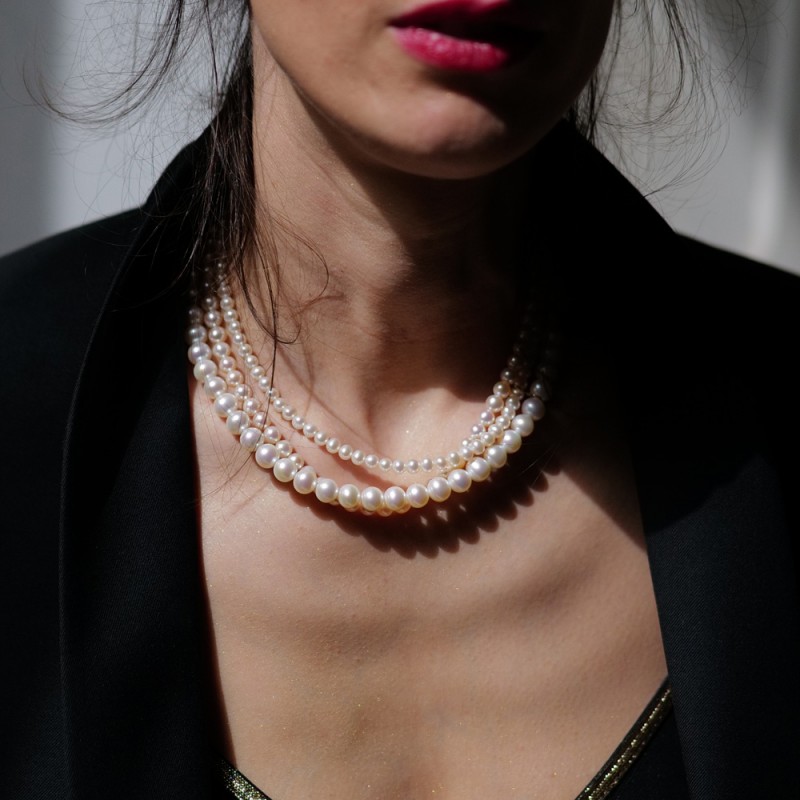 Uses: | While wearing them, pearls interact with the skin. (Caution: some skin types can contribute to the deterioration of pearls). Avoid contact with cosmetics and fragrances. Jewelry is precious and must be worn with care. |