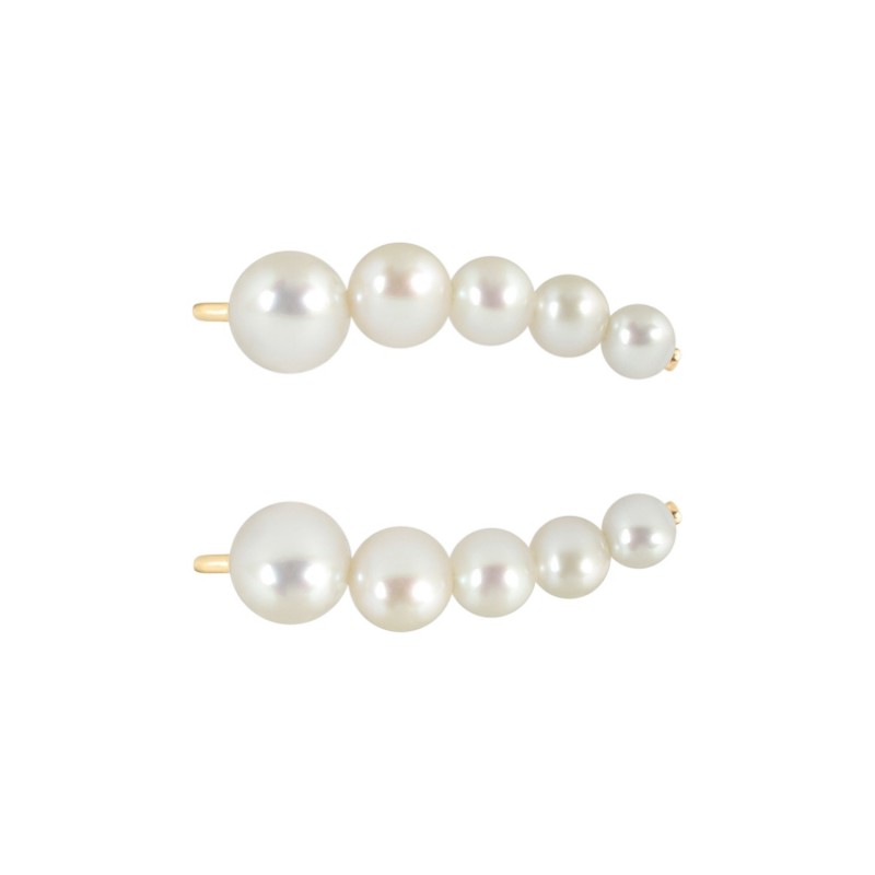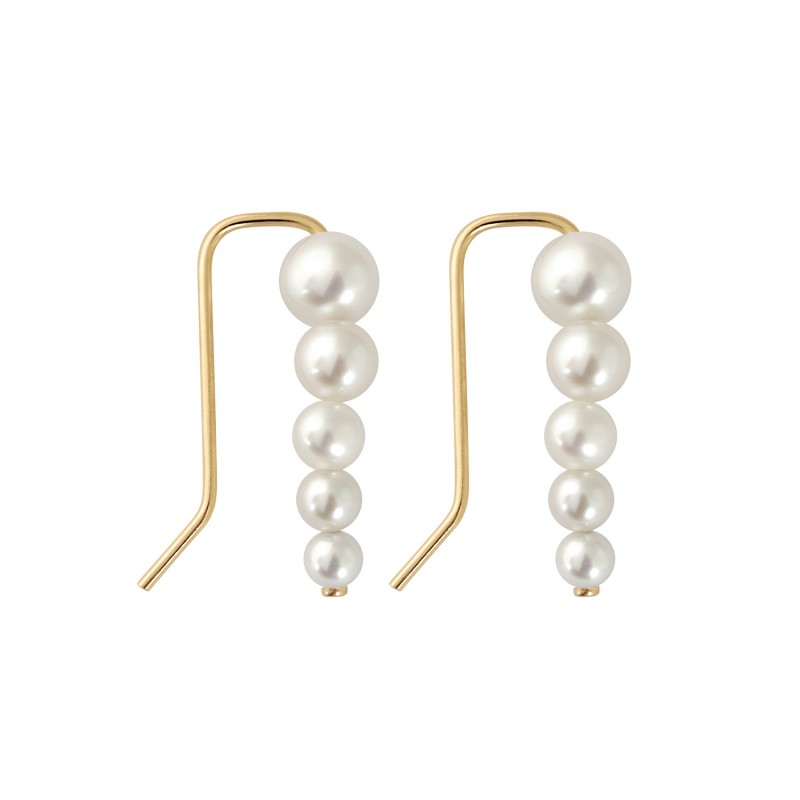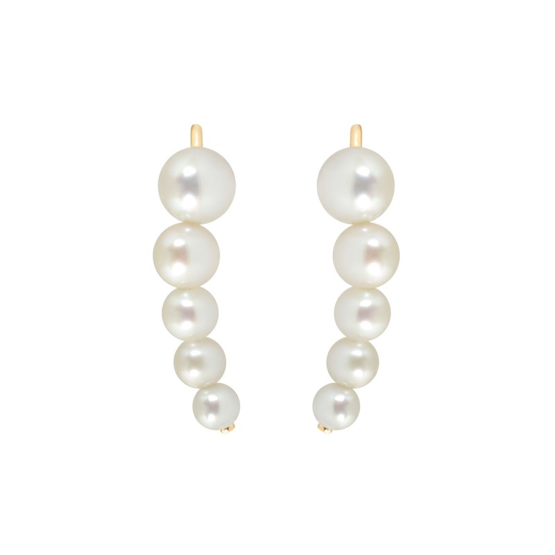 The Flow earring features five graduated white pearls (ranging from 3/3.5mm to 5/5.5mm) which, when placed on the ear, accentuate its contour.