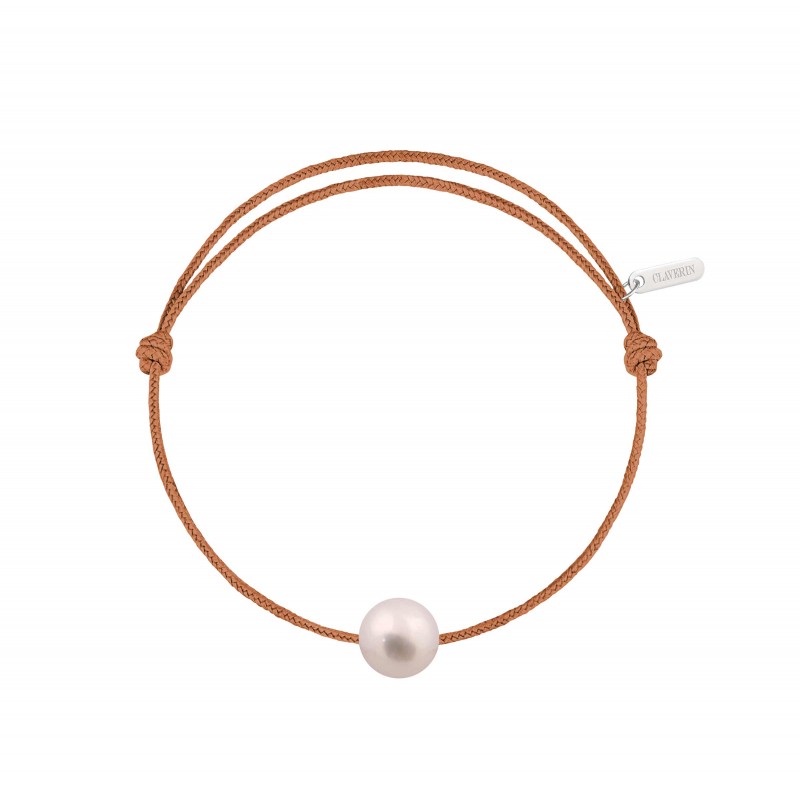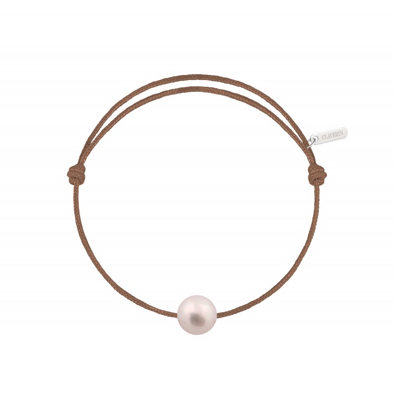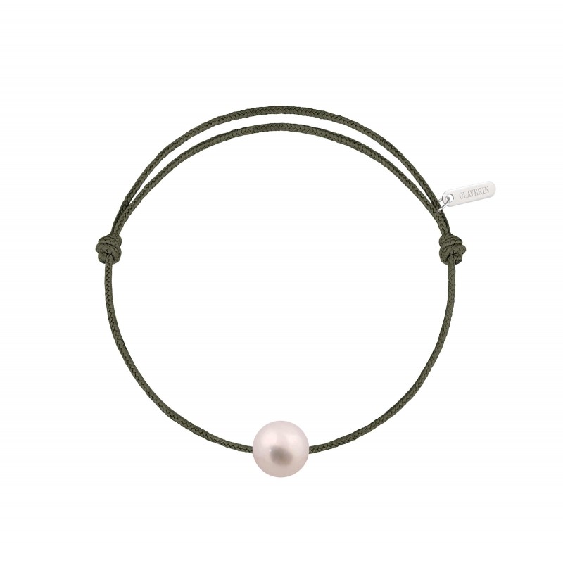 Cord bracelet, adjustable with sliding knot and one white cultured pearl (7/8 mm).