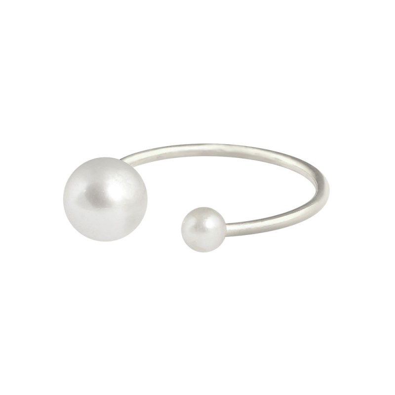 Hanging one ring, 1mm diameter 18K white gold wire and 3.5/4mm and 7/7.5mm white cultured pearls