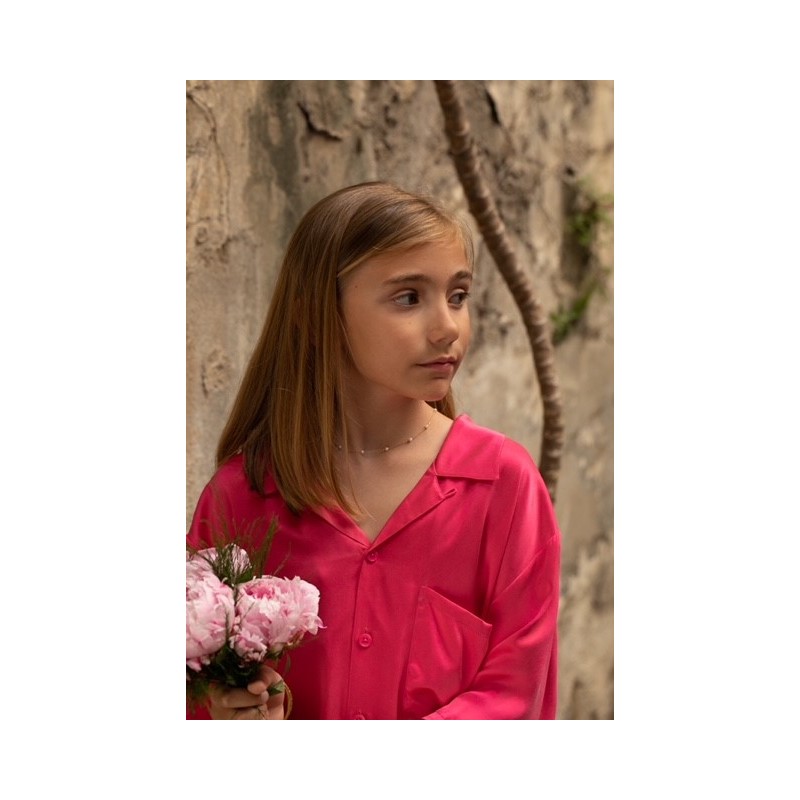 Collier Fortnight, quatorze perles roses 2/3 mm sur chaine en or blanc 18 carats d'une longueur de 38 cm.