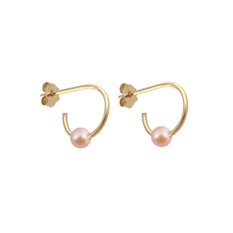 Créoles ouvertes, fil d'or jaune de 0,9 mm d'épaisseur, diamètre 10 mm avec une perle rose de 3,5/4 mm.