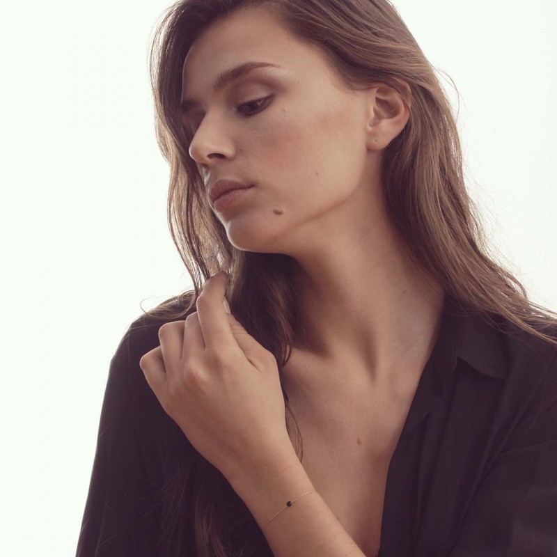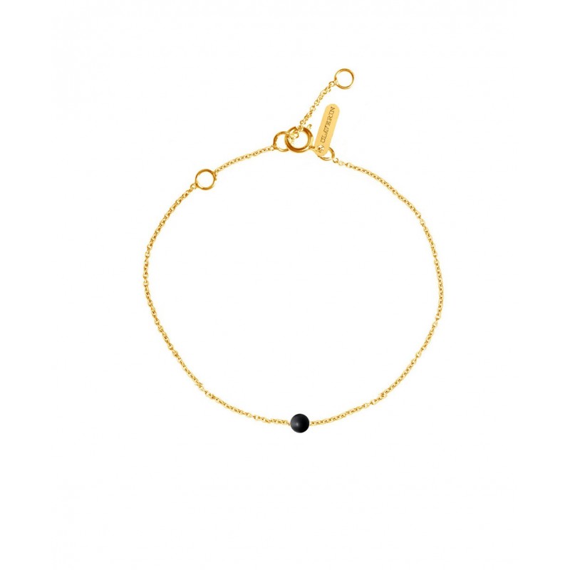 Bracelet perle d'agate 3/4 mm, sur chaîne fine en or jaune 18 carats d'une longueur de 17,5 cm avec contre anneau à 15,5 et 16,5 cm