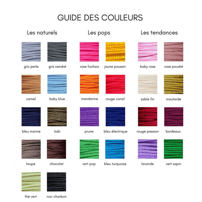Nombreuses couleurs de cordon disponibles.