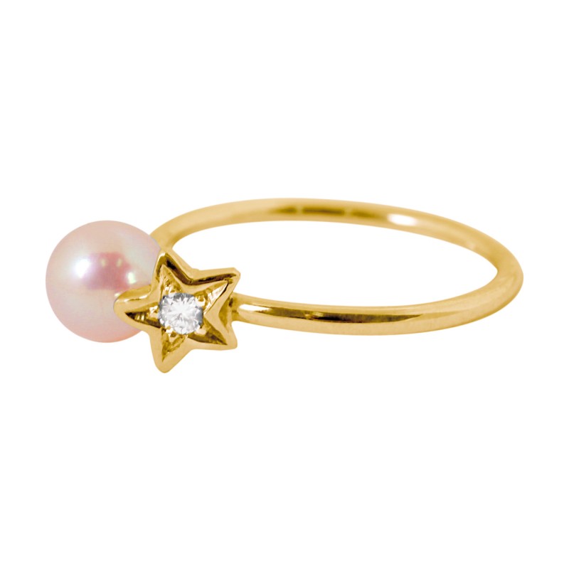 Bague perle rose (6/6,5 mm) et motif étoile diamant en or jaune 18 carats.
