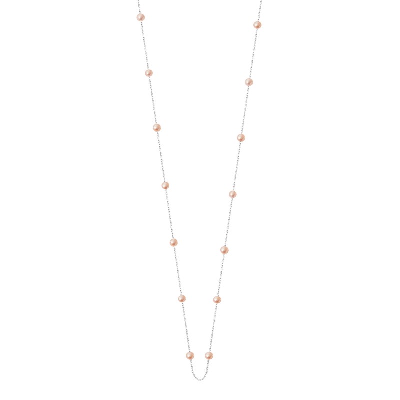 Collier Fortnight, quatorze perles roses 2/3 mm sur chaine en or blanc 18 carats d'une longueur de 38 cm pour un effet plus ras de cou ou 42 cm pour un effet collier.