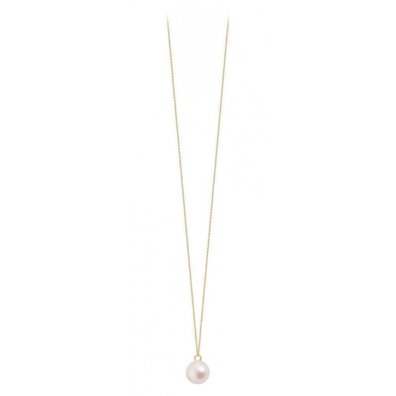Sautoir en or jaune 18 carats, perle de culture blanche 9 mm sur bélière, plaquette Claverin au fermoir, longueur de la chaine 60 cm,