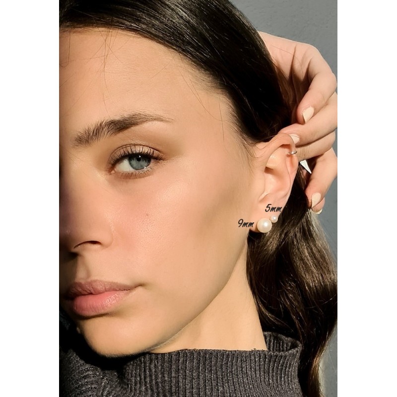 Boucles d'oreilles puces Simply Pearly, perles blanches 5, 7 ou 9 mm, or jaune 18 carats.
