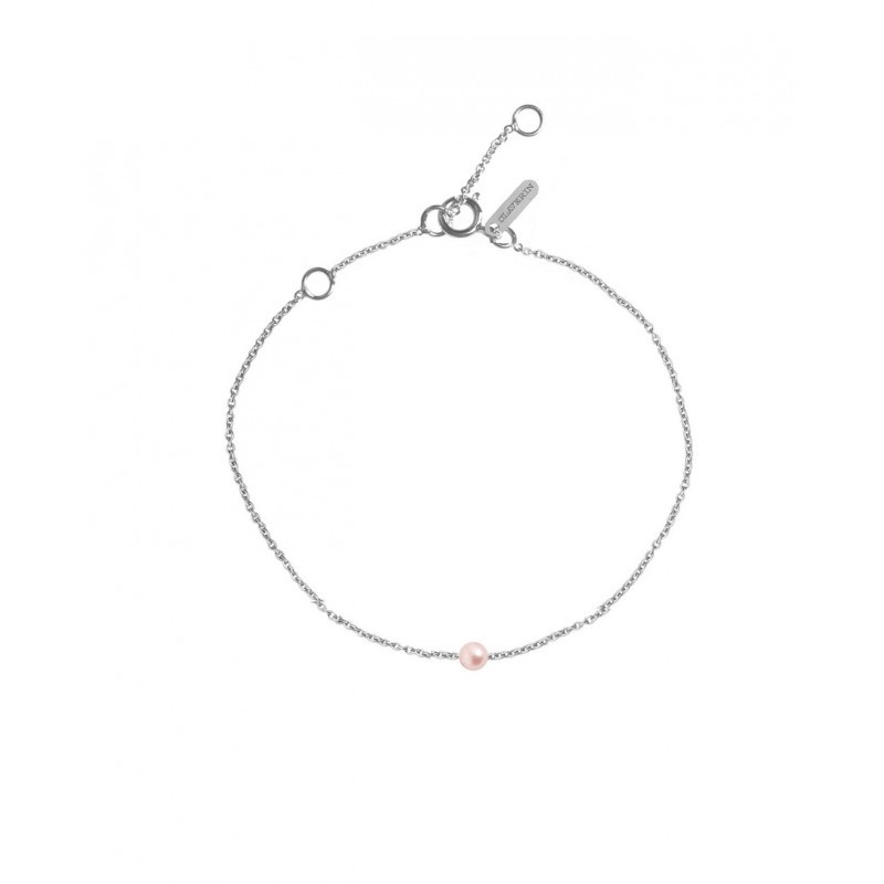 Bracelet perle rose 3/4 mm, sur chaîne fine en or blanc 18 carats d'une longueur de 17,5 cm avec contre anneau à 15,5 et 16,5 cm