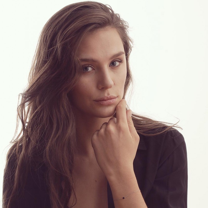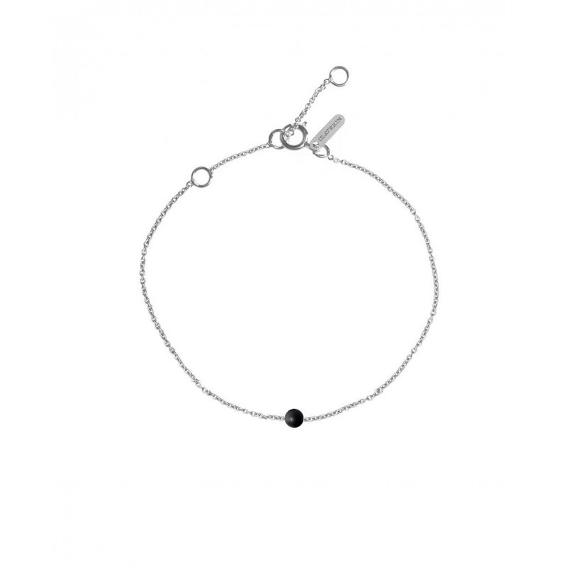 Bracelet perle d'agate 3/4 mm, sur chaîne fine en or blanc 18 carats d'une longueur de 17,5 cm avec contre anneau à 15,5 et 16,5 cm