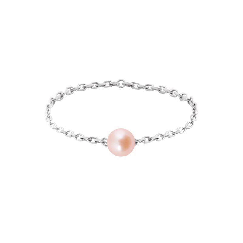 Bague perle rose (3.5/4 mm) sur chaîne en or blanc 18 carats.