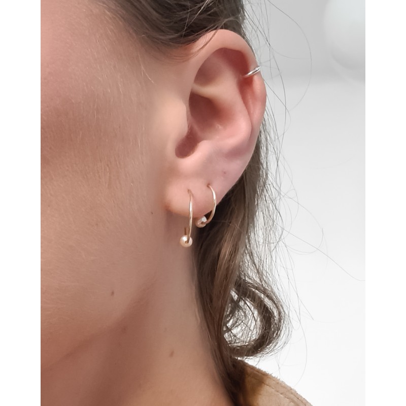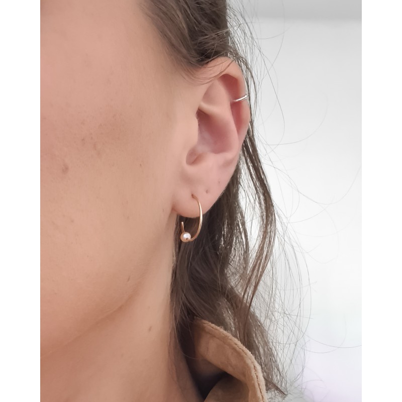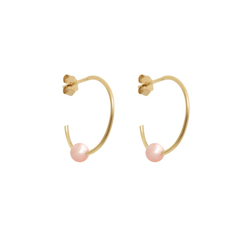 Créoles ouvertes, fil d'or jaune de 0,9 mm d'épaisseur, diamètre 16 mm avec une perle rose de 3,5/4 mm.