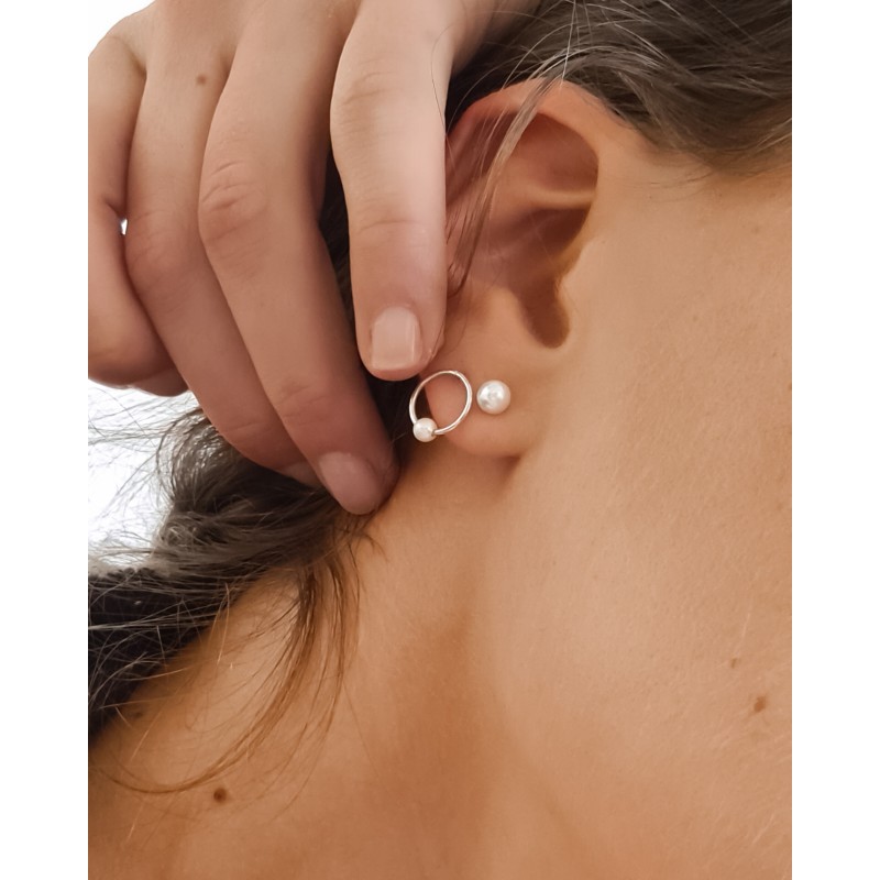 Nos boucles d'oreilles Ring paraissent délicatement posées sur l'oreille comme en apesanteur. Elles allient le classique de la perle à la modernité du design.