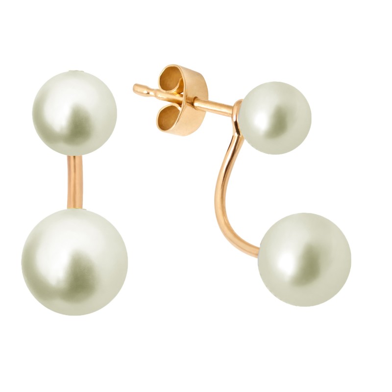 Paire de boucles d'oreilles en or jaune 18 carats et perles de culture blanches 7 mm et 9 mm.