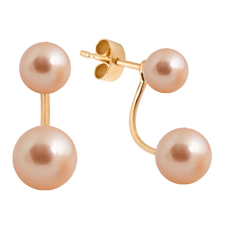 Paire de boucles d'oreilles en or jaune 18 carats et perles de culture roses 7 mm et 9 mm.